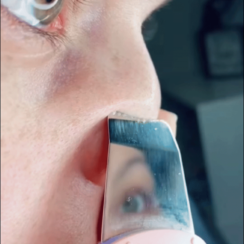 En glissant doucement la spatule sur une peau humidifiée, les vibrations expulsent sébum, impuretés et comédons, sans douleur ni marques.